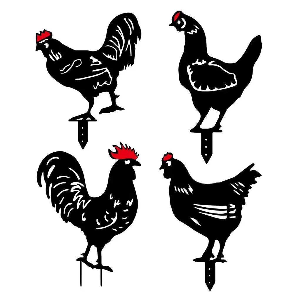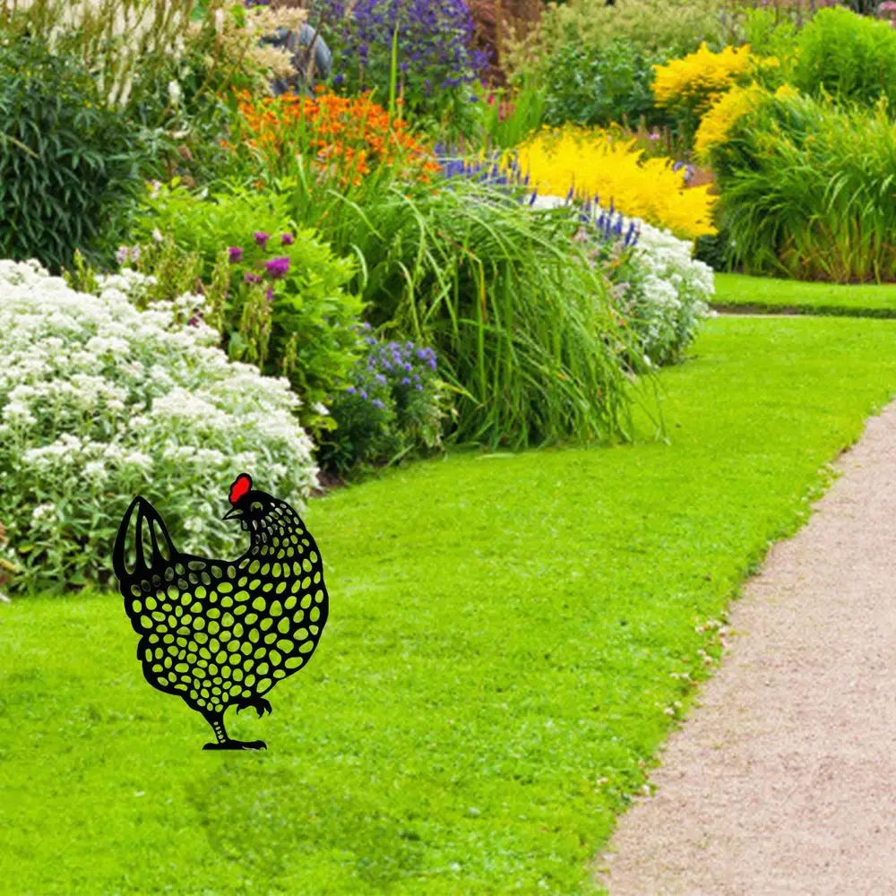 Garden Chicken Silhouette Stakes Sun-proof And Waterproof Metal Animal Yard Art Black Decoration For Lawns Gardens Backyards